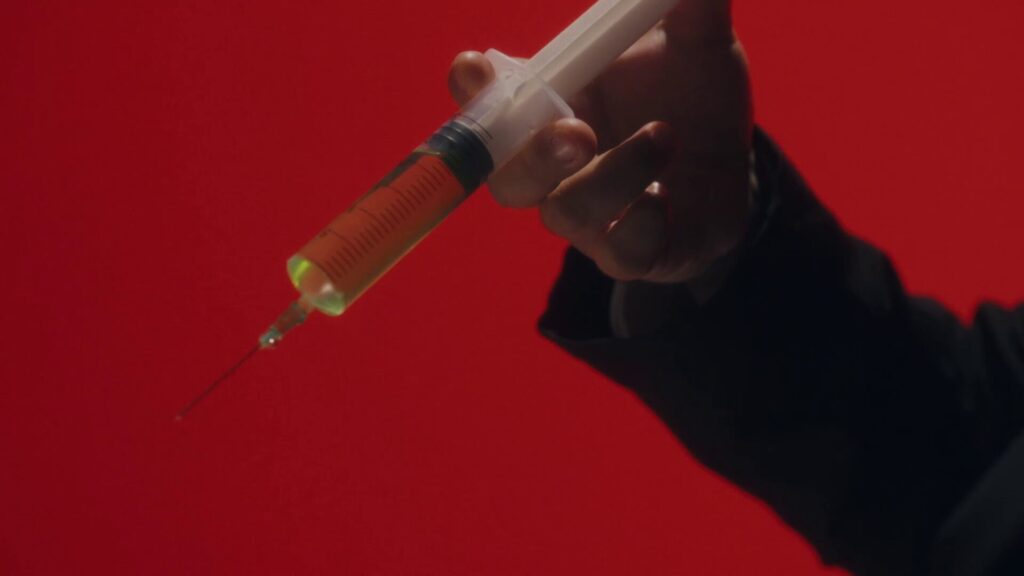 なんか赤い世界で夏目奏(染谷俊之)が椅子に縛り付けられていて周りに3人の男「ネズミ様が開発したG33か、こいつになら試してみてもいいだろう」これが特殊能力を作り出す何かの薬品?でもさ、シリンジでかすぎだよ?50ml位?例えばコロナワクチンの1回の摂取量は0.2ml、複数回分の薬をシリンジの中に入れっぱなしなんてことはありえないのであの量が1回分…象用かな?
