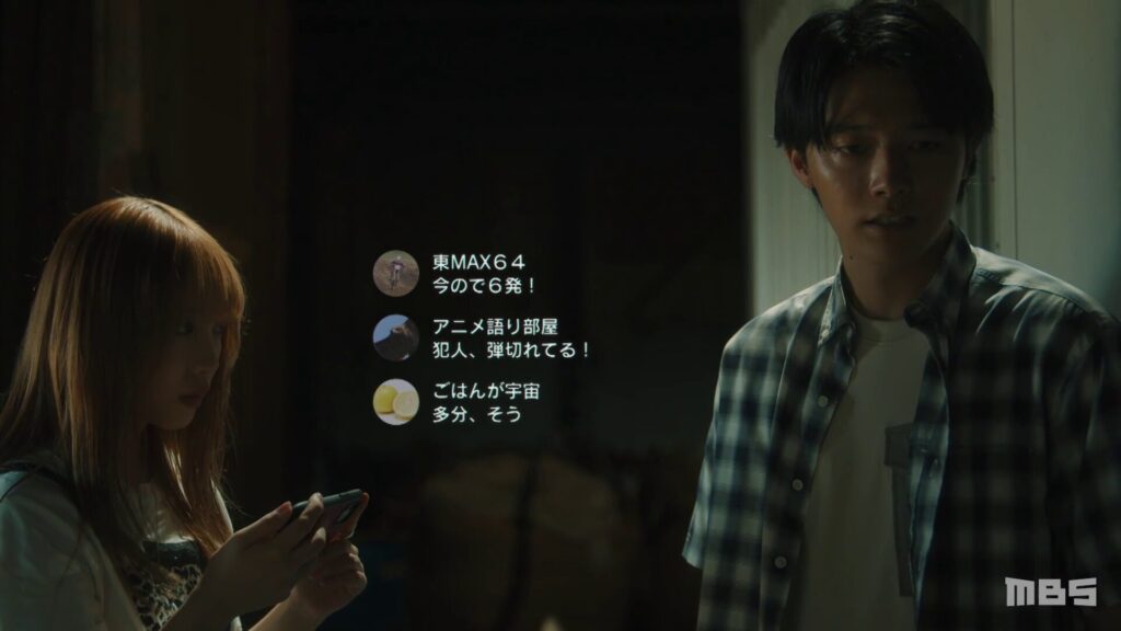 今度は若手人気イケメン俳優・楠木速斗(鈴木仁)の誕生パーティーに潜入する、彼とタレントのami(新田さちか)のキスシーンを盗撮したり薬物使用疑惑をかぎつけたりした後にそれをネットに晒す、もちろん犯人捜し始まるけど加菜子(与田祐希)だとは表向きはバレていない模様…なんで?自分の垢でバズってるんだから犯人モロばれなんじゃないの?